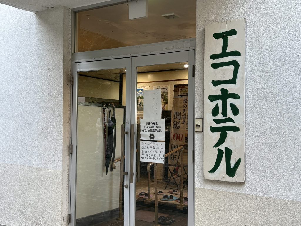 入口にある「エコホテル」の看板がなんとも印象的…。