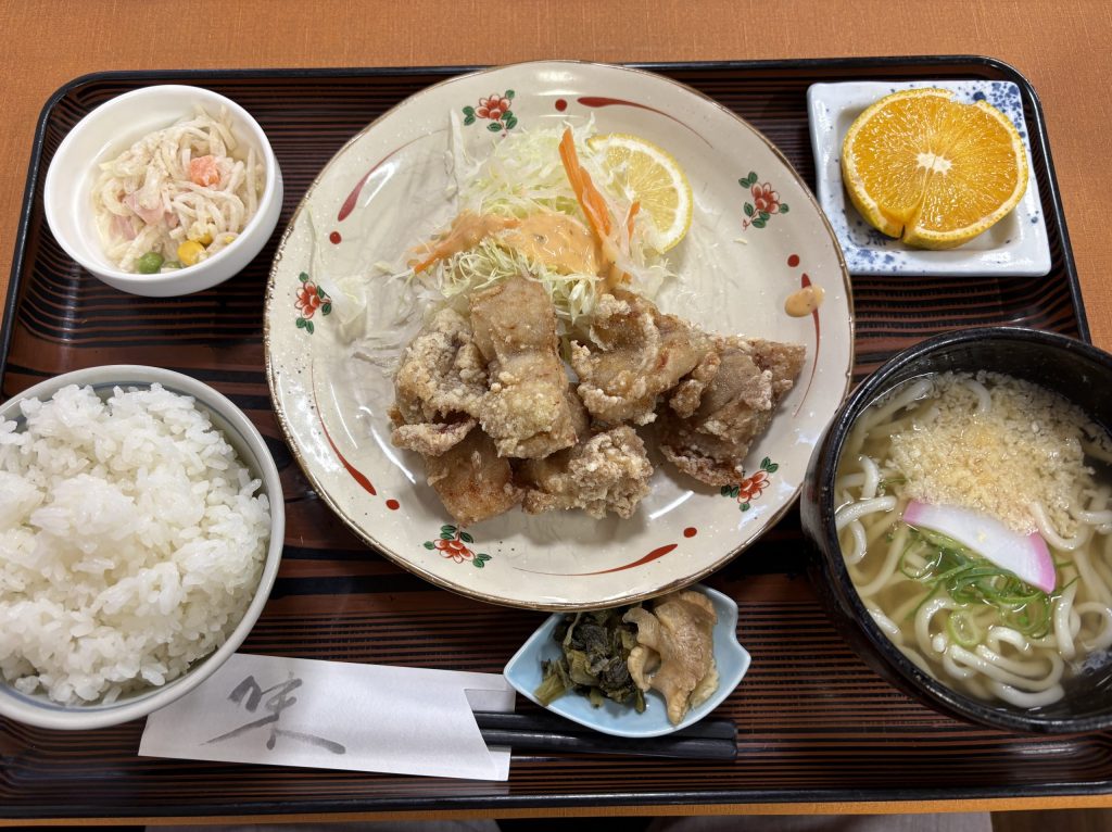 人気店らしく、とり天定食(うどん付き)とちゃんぽんを注文。